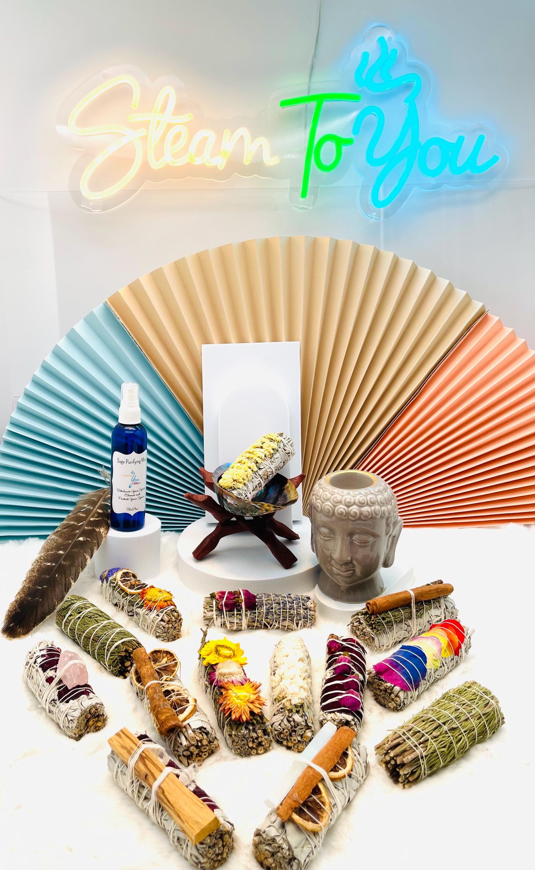 SMUDGING—Using smoke from Sage or Palo Santo goes beyond just cleaning the air. It is a powerful ritual that can cleanse your spiritual space, remove negative energies, and bring peace and relaxation!